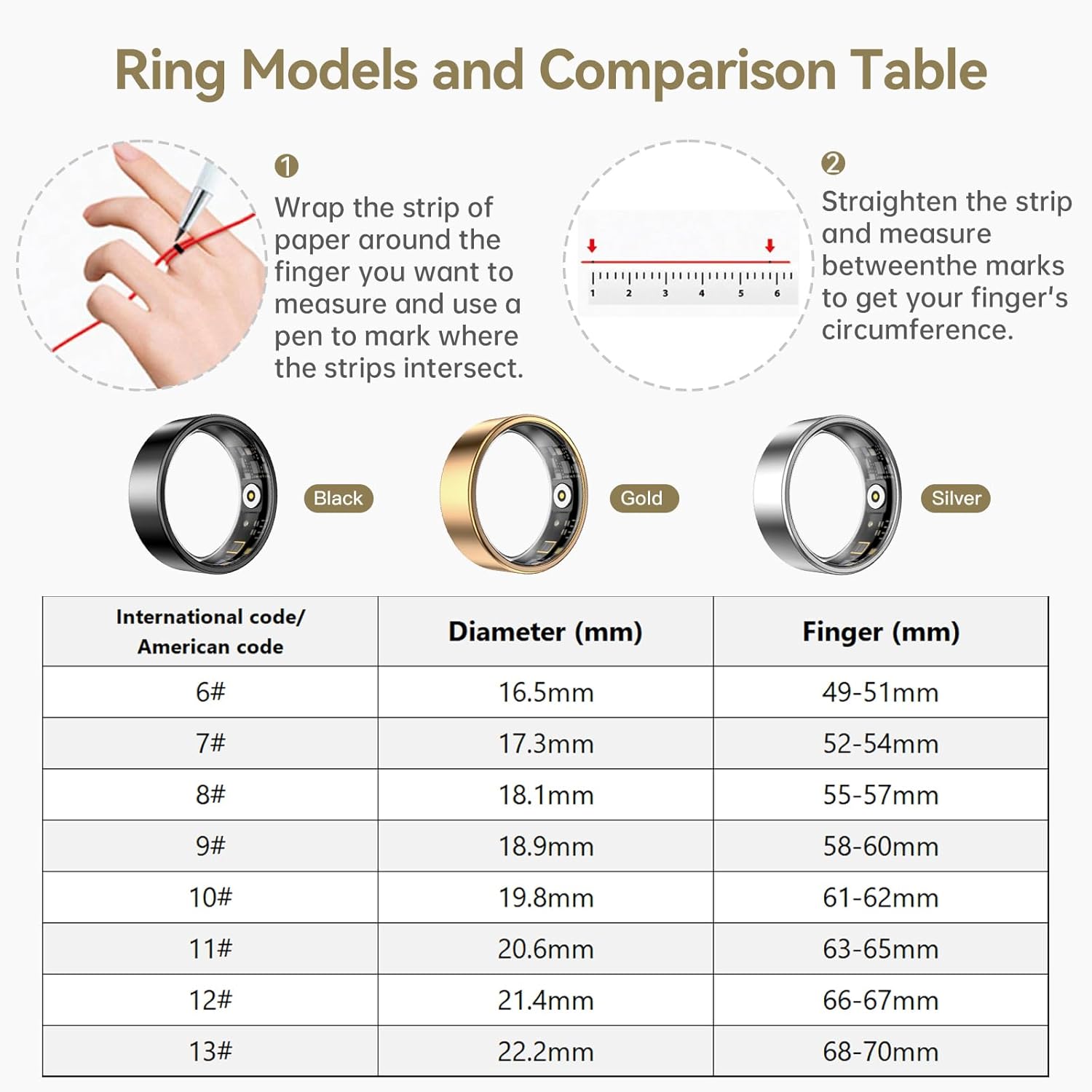 Smart Ring for Women & Men, Fitness Tracker with Heart Rate, Blood Oxygen, Sleep Monitoring, Long-Lasting Battery, IP68 Waterproof